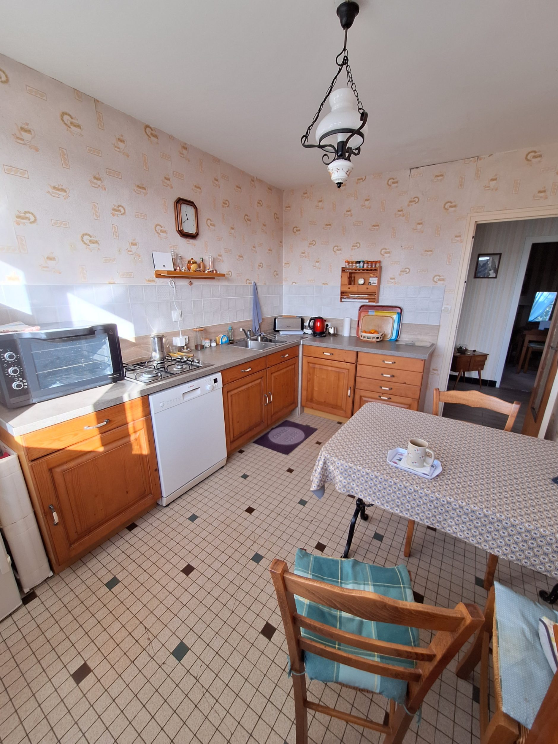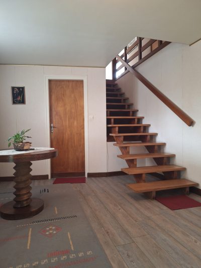 À l'étage, vous profiterez d'une grande pièce de vie lumineuse, d'une cuisine indépendante, de trois chambres, d'une salle de bains et d'un WC séparé.