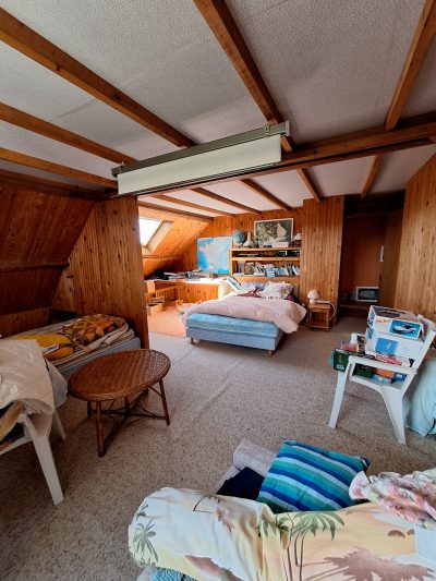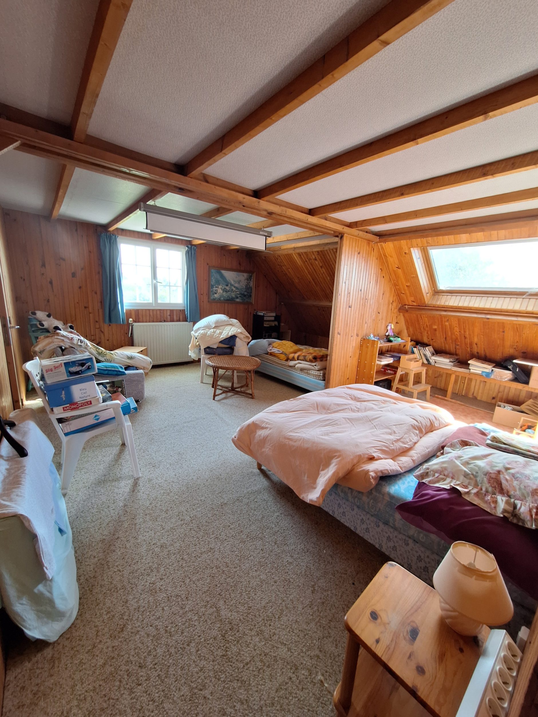 À l'étage, vous trouverez une grande chambre ainsi qu'une partie grenier aménageable, idéale pour créer une chambre supplémentaire, un bureau ou un espace de loisirs selon vos besoins.