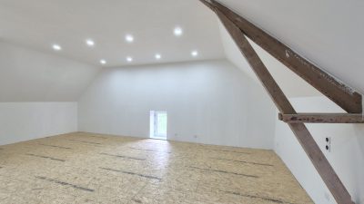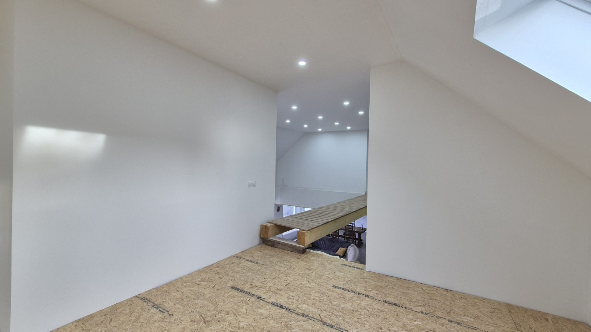 A l'étage : Une mezzanine desservant une grande suite parentale, à finir d'aménager