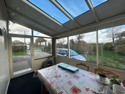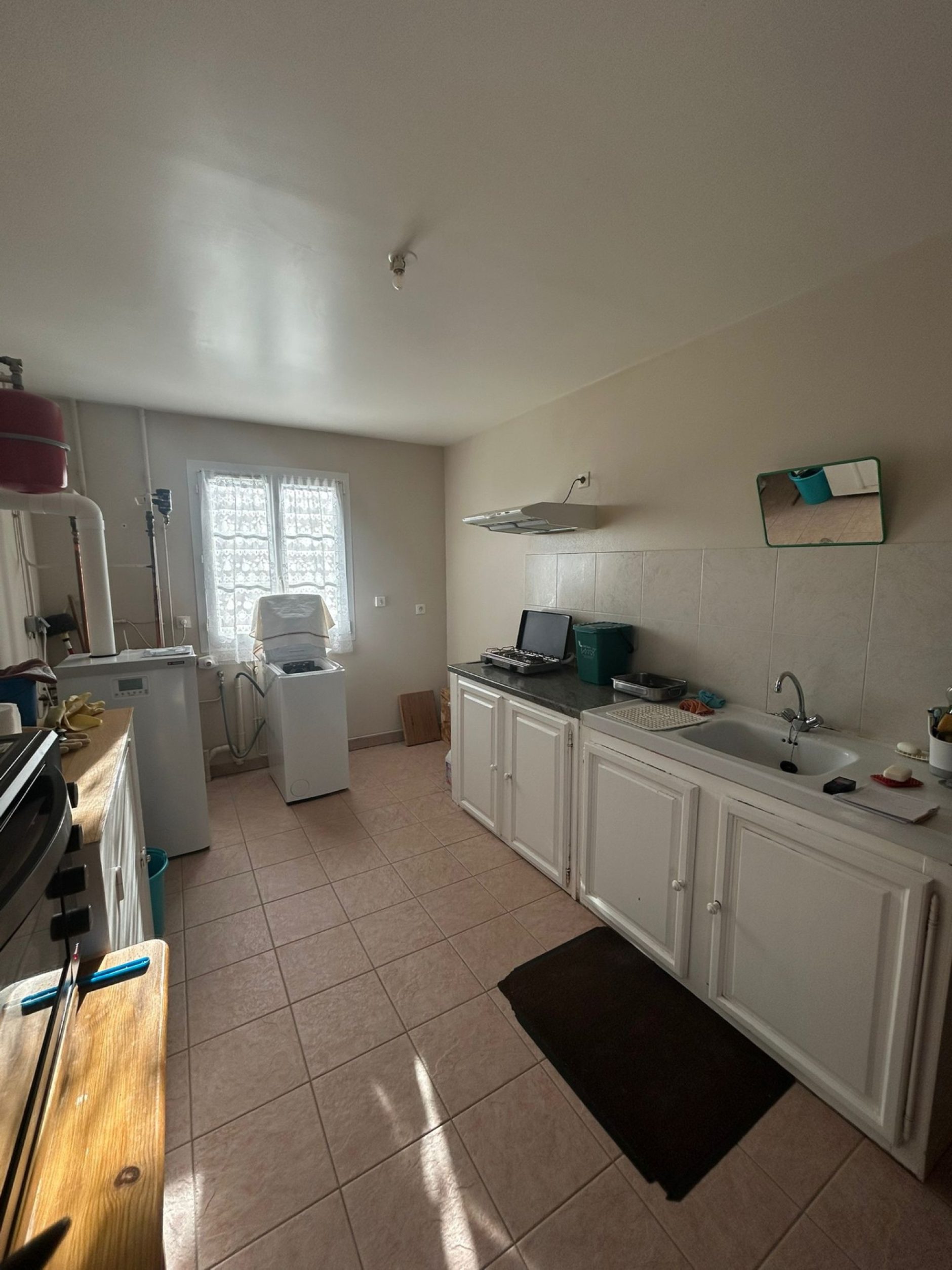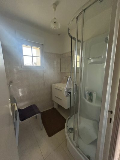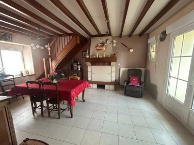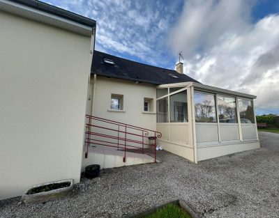 Elle est composée au rez de chausée d'une grande entrée pouvant servir de pièce à vivre, d'une cusine équipée, d'une grande arrière cuisine/buanderie, d'une chambre spacieuse, d'une salle à manger, d'une salle d'eau, d'un WC et d'une véranda de 10.5m2 non comptabilisée dans la superficie habitable car non chauffée actuellement.